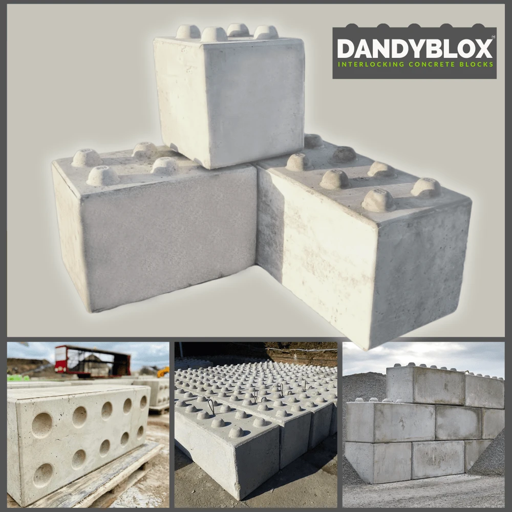 DandyBlox – Dandy’s Precast Interlocking Giant Concrete Blocks are perfect for blocking farm gates, wall building, storage bay construction, building barriers, fire-break and security walls, crash-barriers and so much more. Easily expand your construction at any time.