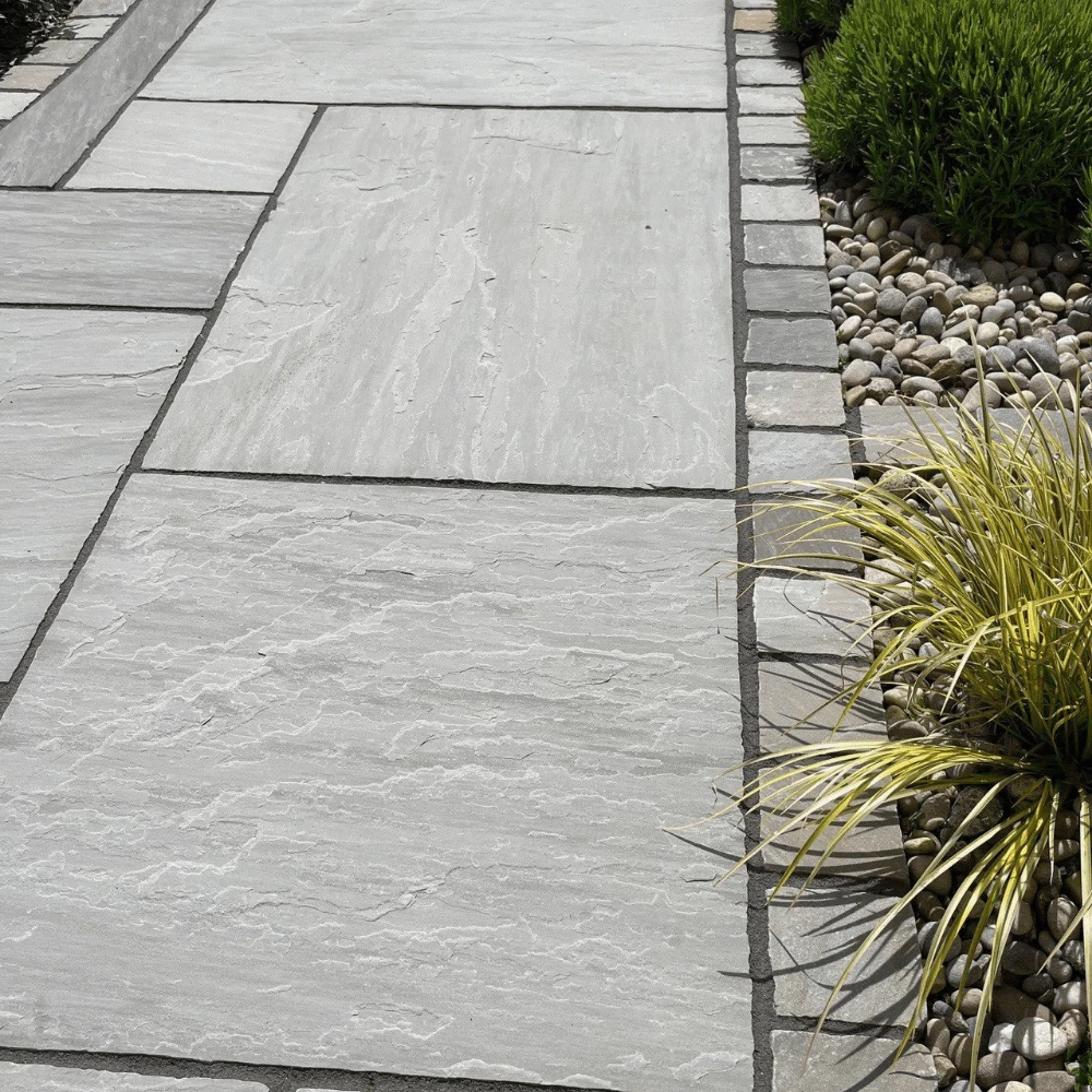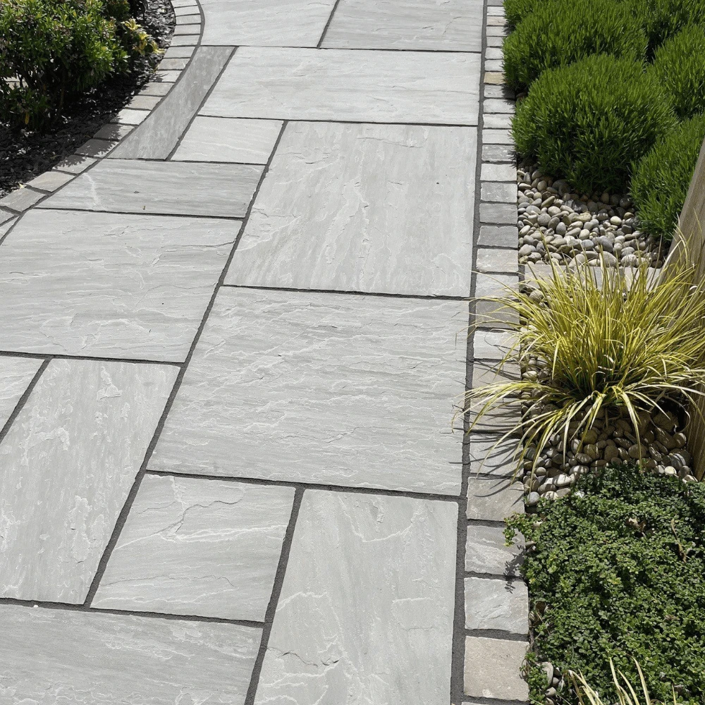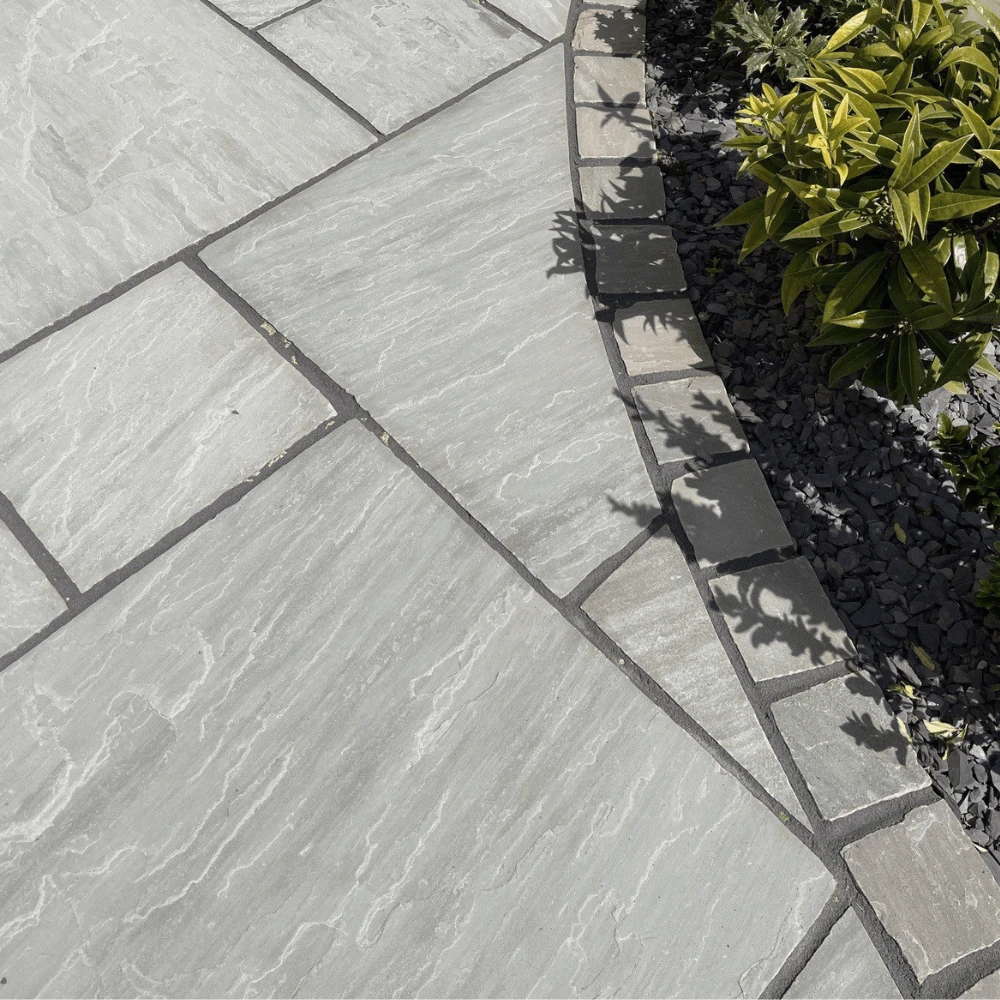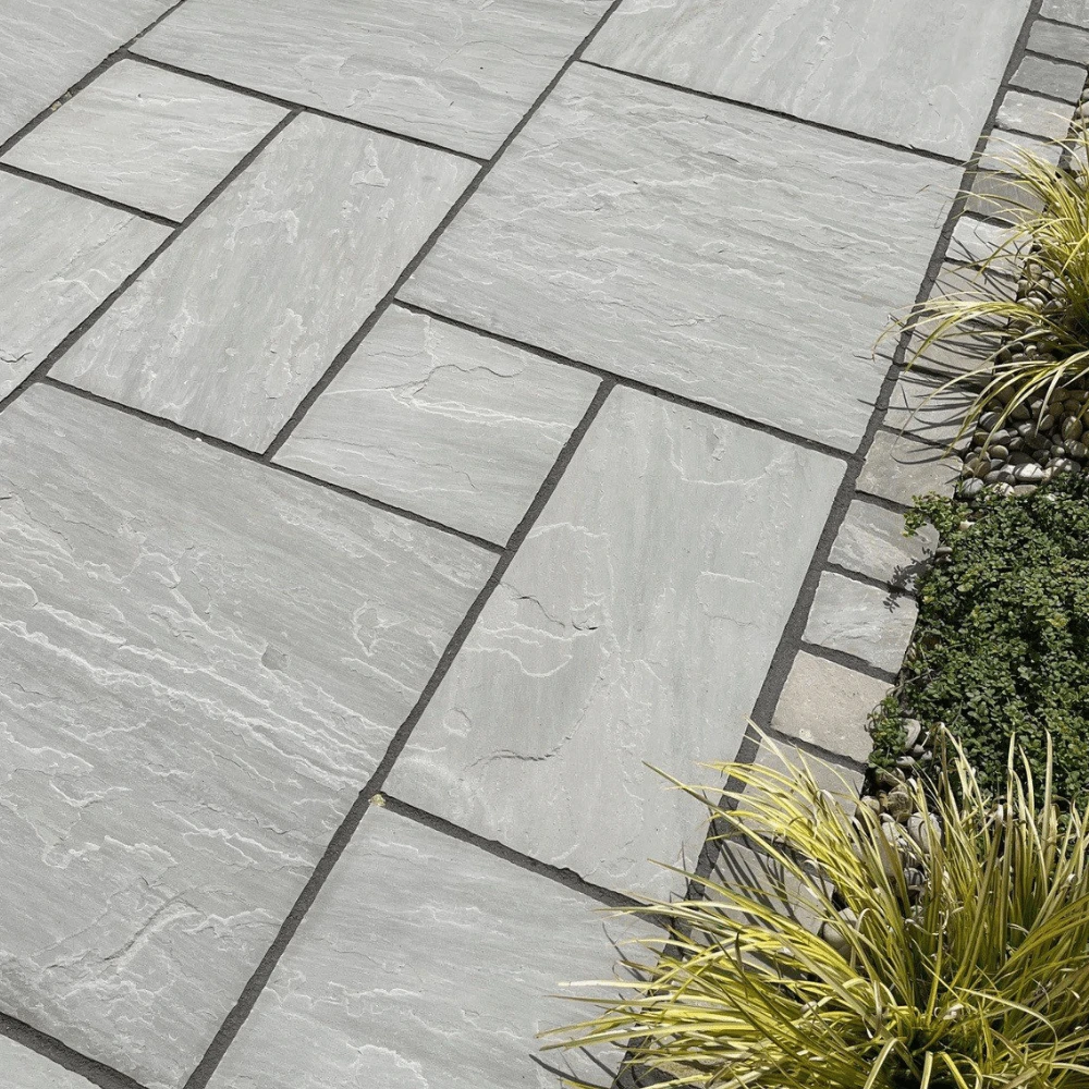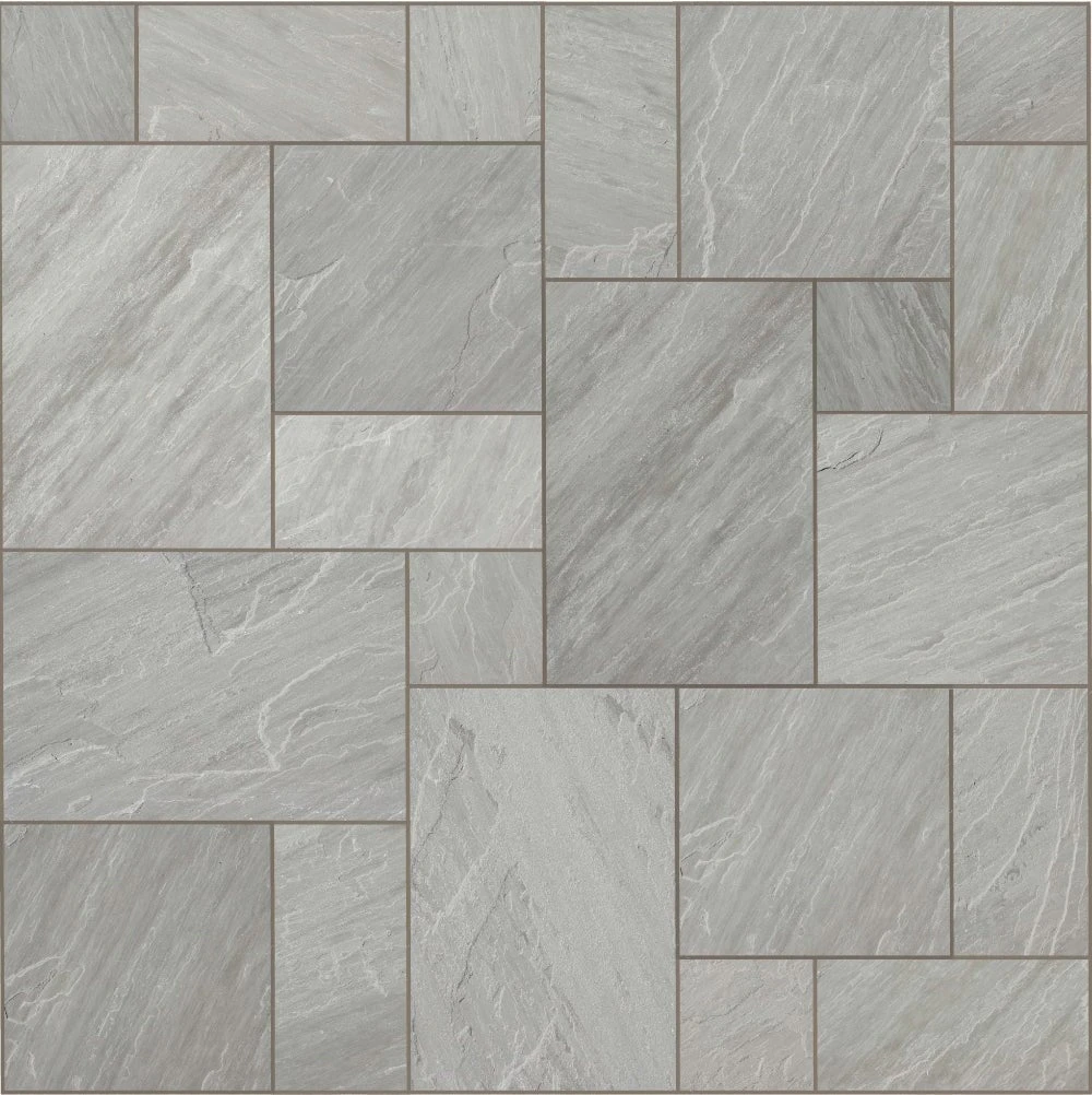 Beautiful natural stone paving in shades of grey. Crate of 15.25m2, 48 pieces in 4 various sizes.