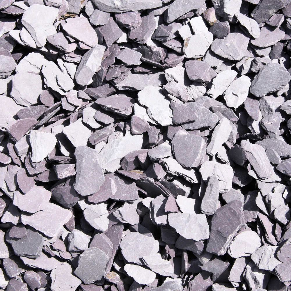 Slate is available graded to around 40mm down, which we recommend for areas which will be looked at such as borders, seating areas and water features – not driven or walked on ideally. Welsh Crushed Slate is a fairly uniform tones of blue-plum but you should expect to see the odd mix of green and grey in there too.